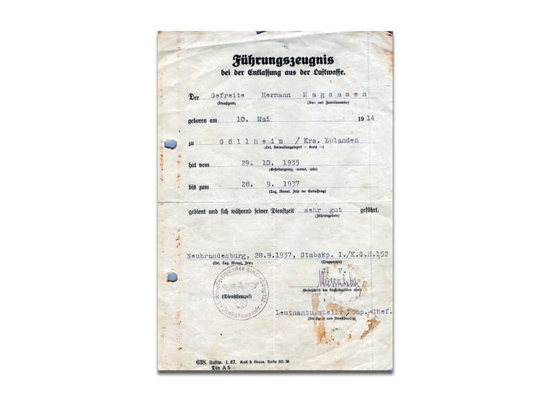 Führungszeugnis bei der Entlassung aus der Luftwaffe