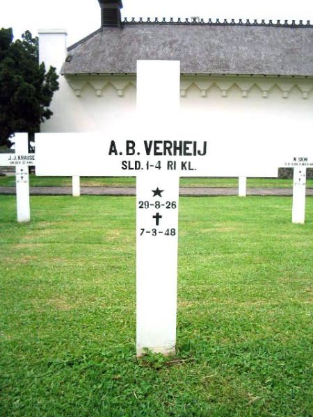 Son of Cornelis Verheij (5-3-1905) and Pieternella aan de Wiel (13-09-1907). Private 1-4-RI. Died at the military hospital in Batavia as a result of a shot wound to the back.