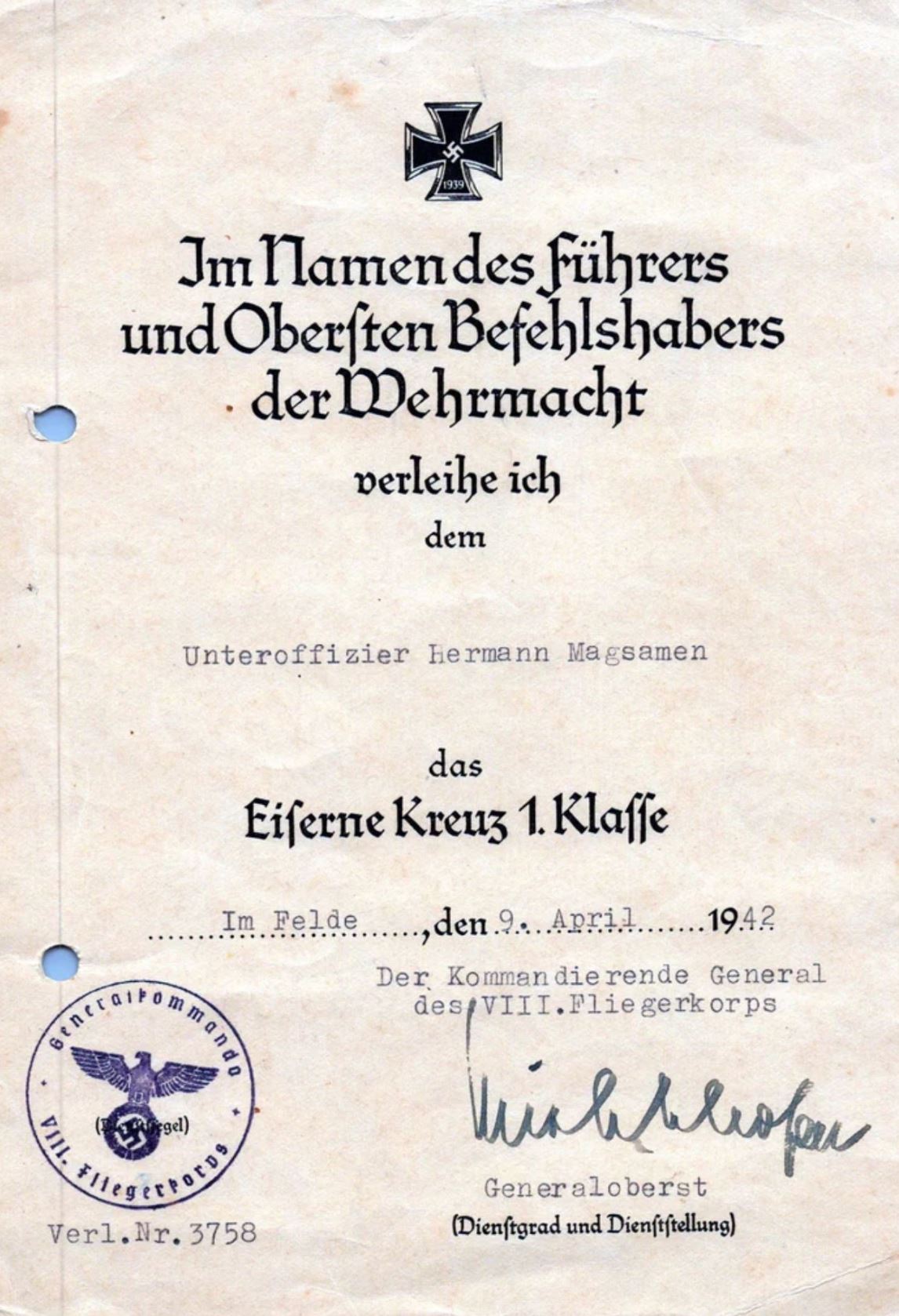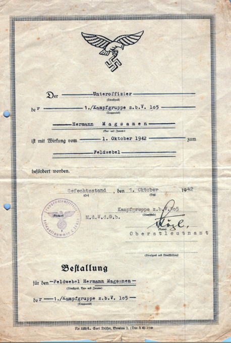 ?: Gefreiter 1941: Unteroffizier 1 oktober 1942: Feldwebel