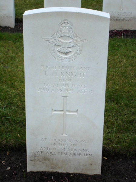 Flight Lieutenant Leslie Herbert Knight, pilot, 78 Squadron RAF. Son of Herbert T. and Louise Knight from East Cosham, Hampshire. Husband of Freda Knight from East Cosham.