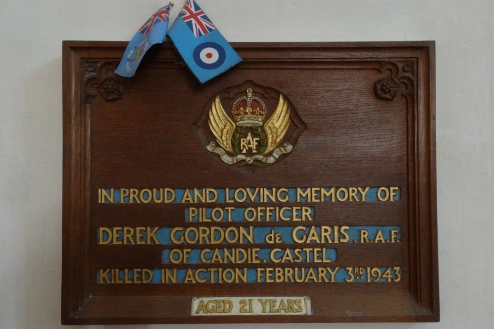 Plaque Pilot Officer Derek Gordon De Garis RAF